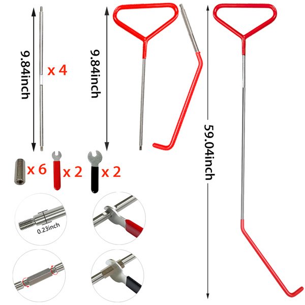 It consists of 6 parts -9.84"" (~25cm) handle rod, 9.84"" (~25cm) hook rod and 4 9.84"" (~25cm) extension rod, which can reach 59.04"" (~150cm) when assembled. It can be assembled into 3 sizes according to different needs. 1. Non-slip soft rubber handle protection and groove design for easy assembly and disassembly, lengthening the rubber position of the hook head, without worrying about damage to the car paint.